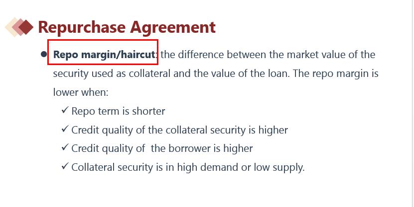 Repo margin就是haircut。风险越高,Repo margin越大。