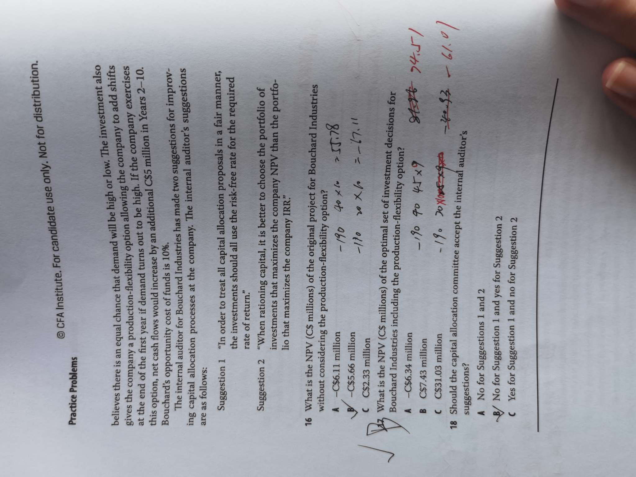 demand low的现金流为为CF0=-190,C01C010=20,NPV=-67.11
