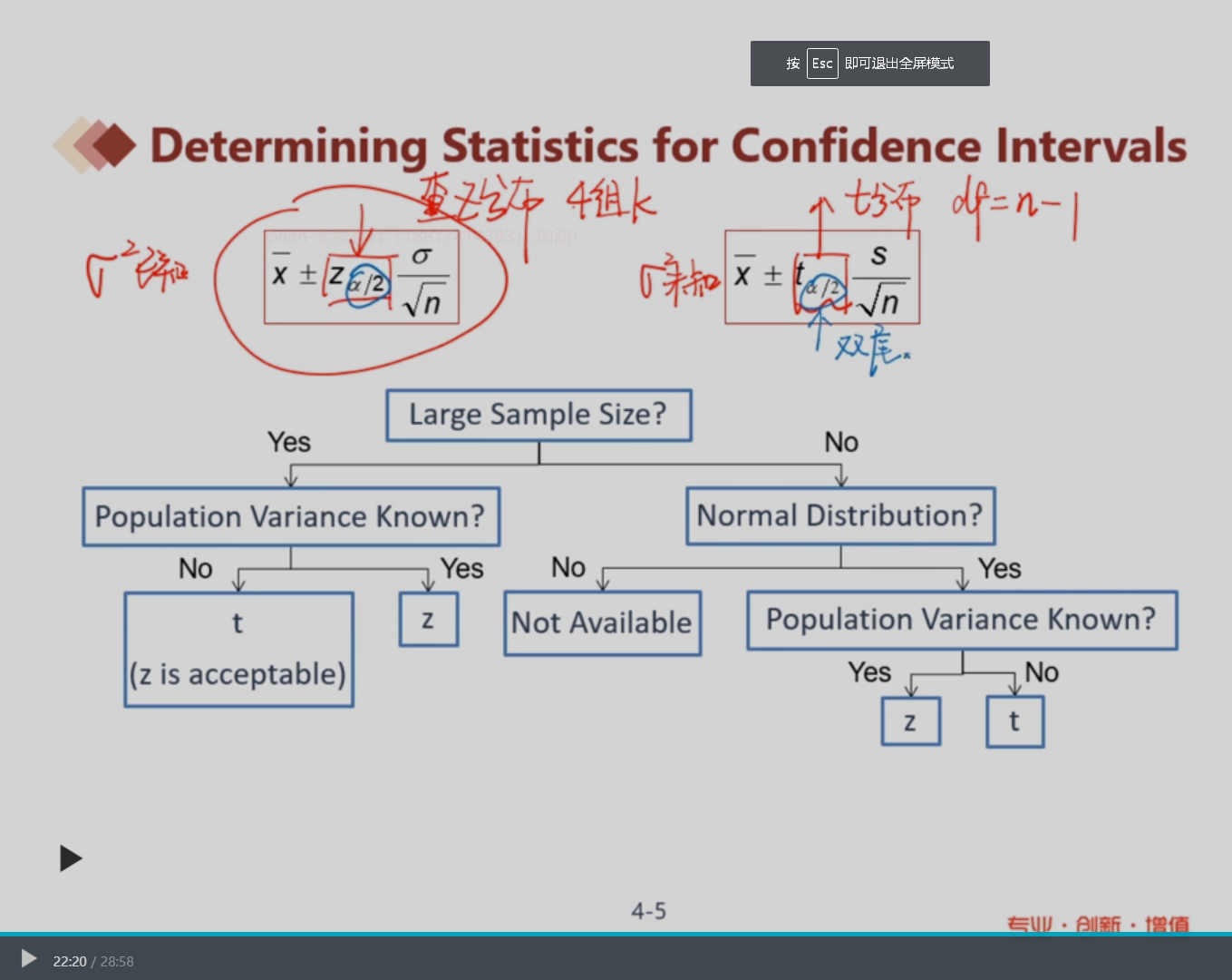 【回复】因为在大样本(n大于等于30)情况下,样本均值趋近于正态分布(对应z分布),于是用样本均值来估计总体均值时,可以直接用z分布。不过此时用t分布会更精确。毕竟是趋近于正态分布(讲义截图左下角蓝色两个框,)。