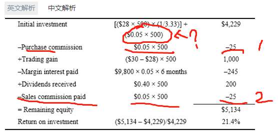 这里没问题哦,我们要算的是return on investment,所以在算return的时候要扣除所有的费用包括利息费用和佣金。