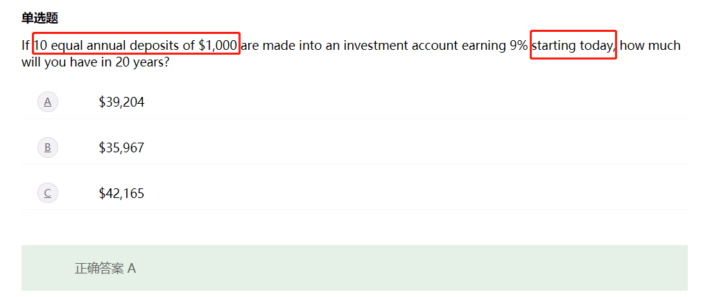 前十年说了“10 equal annual deposits of $1,000”,后十年就没有现金流发生了,于是PMT后十年是0