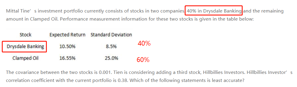 您理解错了,我的意思是原资产组合比例给了,但是没给新资产与旧组合或者新资产与旧资产组合中资产的比例,那就不可能算出来新资产组合的对应数据的,那选项中如果给新资产组合的数据,所有的都应该是错误的,这样直接排除可以吧