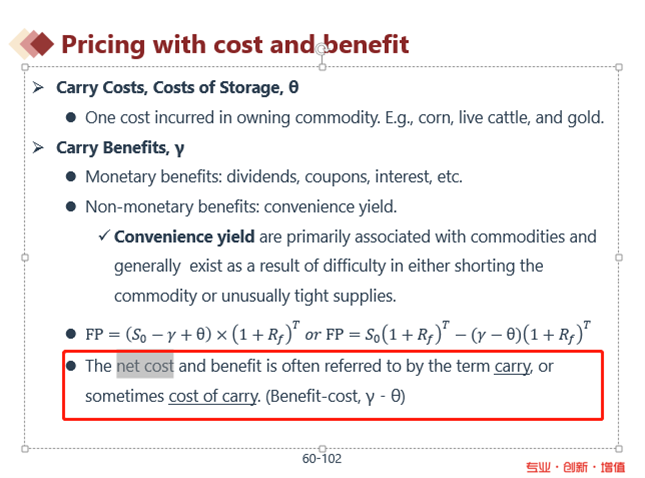 远期合约定价公式:FP=(SP+CC-CB)x(1+Rf)^T