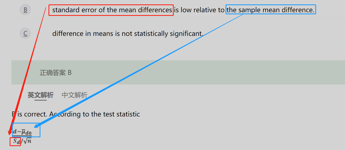 B的意思就是分子更大,分母更小,计算结果(t检验统计量)更大,检验统计量更大,意味着更加容易落在拒绝域,拒绝原假设