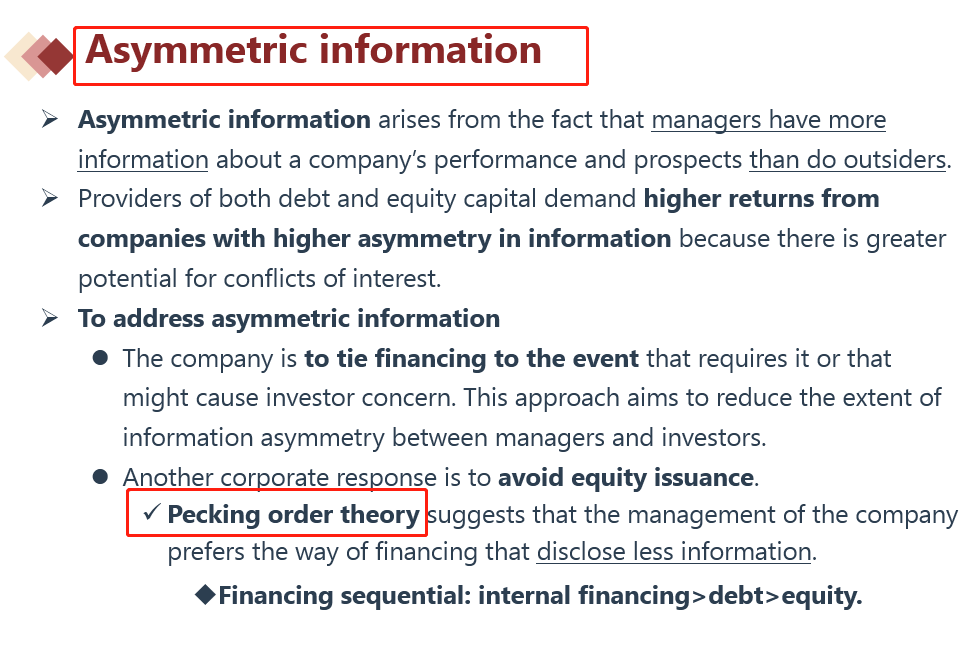 请问融资顺序理论和信息不对称,向投资人发送信号,这些知识点在哪里?