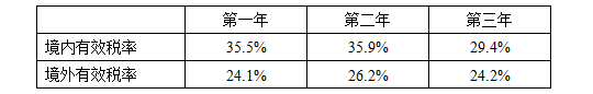 同学你好,有效税率=所得税费用÷税前利润 根据题目信息可以计算得出,第一年至第三年的国内有效税率和境外有效税率分别的金额(具体见下图)因此这道题目最终选择A选项,相比美国境内的有效税率,境外有效税率每年均低于境内有效税率。