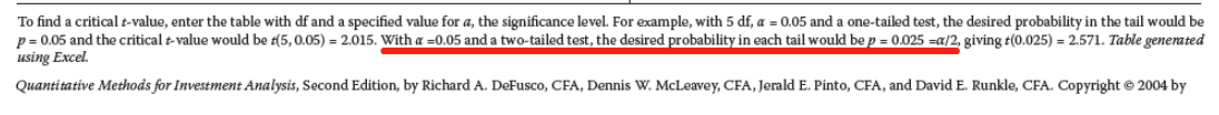 p表示“probability”概率,在CFA一级中,查表涉及“p”的表只有“t学生分布”,一般认为是单尾(右尾)概率