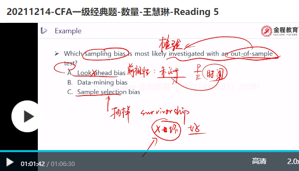 其次说明,在CFA一级数量中,out of sample test是放在data mining bias知识点。换句话说,CFA知识体系认为本题最优选是B。