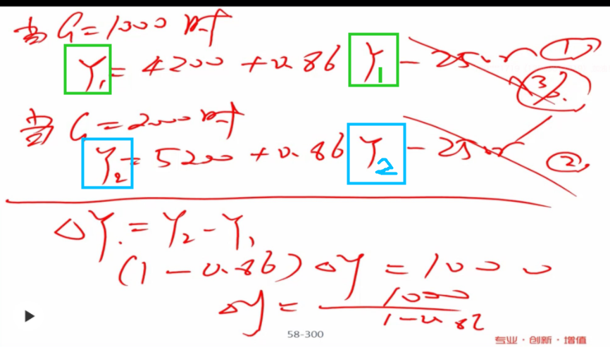 故,可以得到(1-0.86)(Y2-Y1)=5200-4200=1000