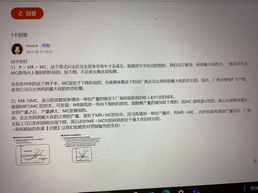 而在长期中,厂商所能获得的经济利润是逐渐减少的,直到为0,市场达到长期均衡。但相比负数,0 依旧是大的。所以。不管哪个市场中,厂商追求的利润最大化,都是MR =MC