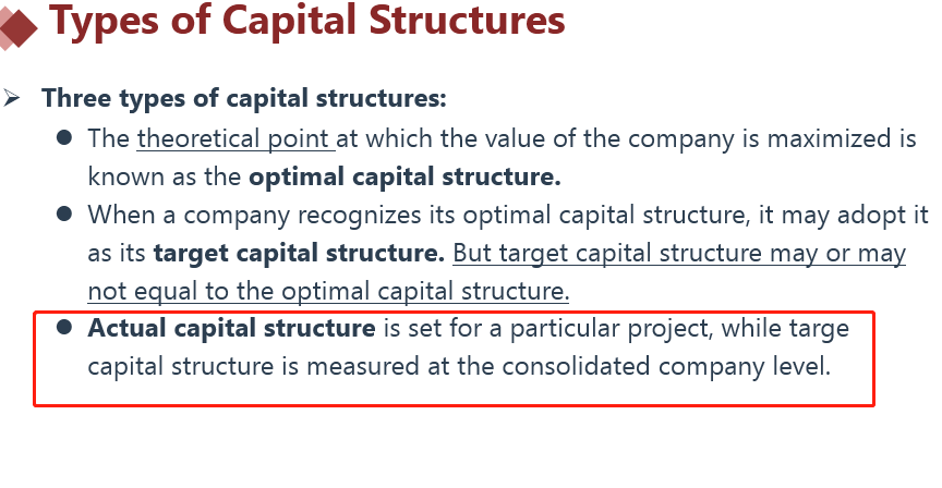 C说反了,应该是Actual capital structure is set for a particular project, while targe capital structure is measured at the consolidated company level.