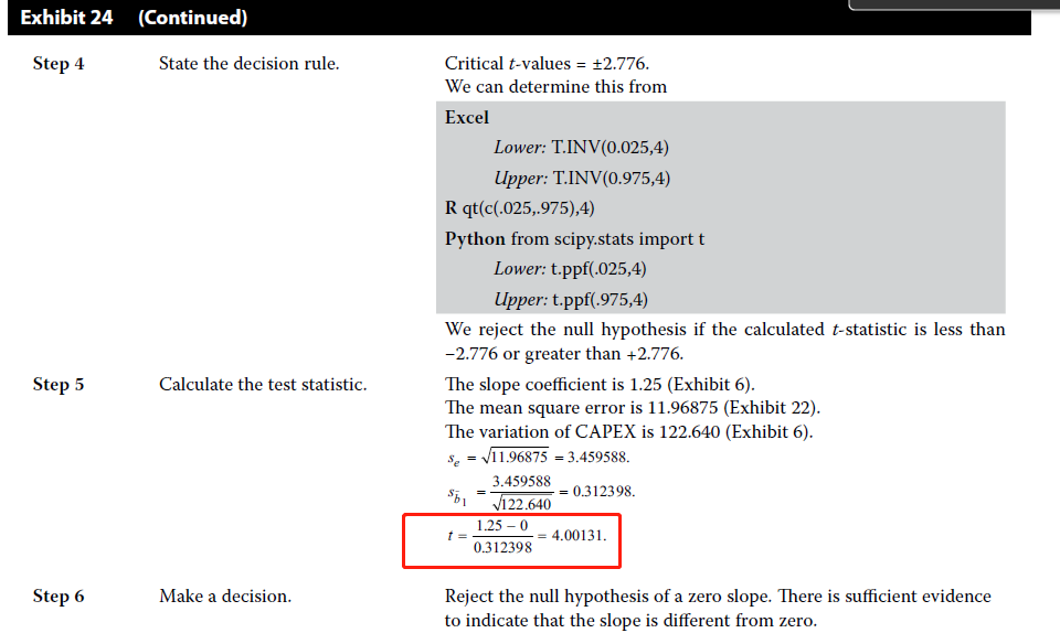 求解的公式请参考附图(原版书截图),不要求掌握,如果题目考到,会直接给出斜率的检验统计量,t-statistics