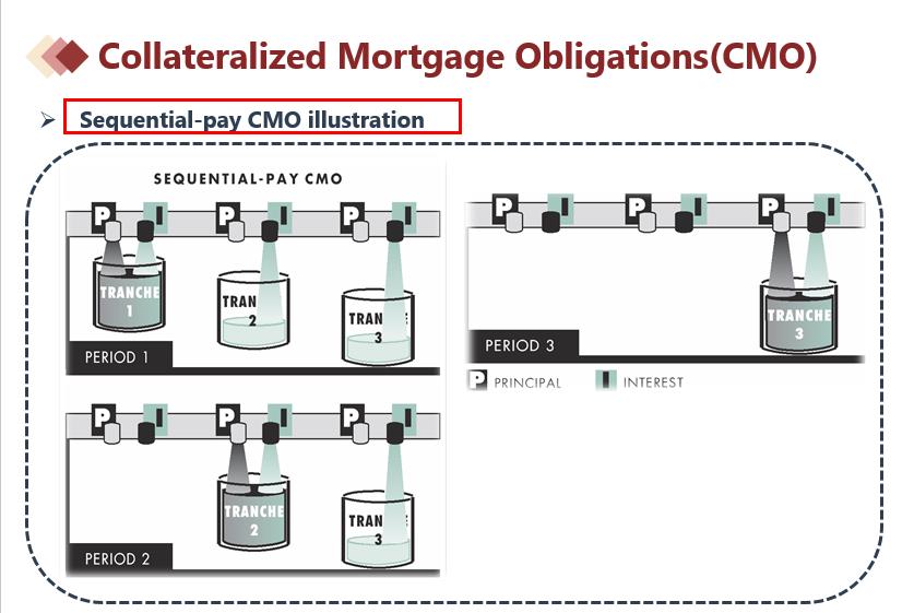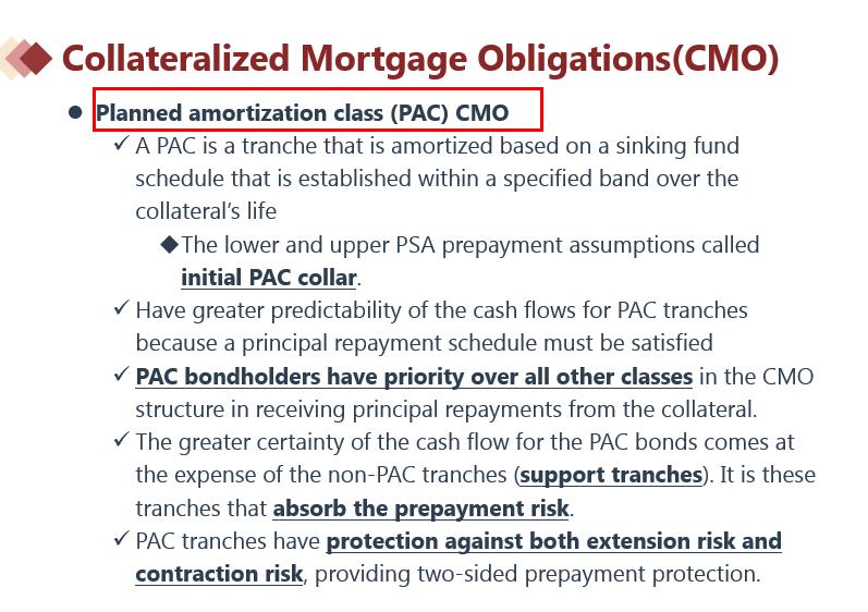 sequential pay和PAC这是两种CMO的结构,讲义中关于CMO的内容主要讲的就是这两种结构。见下图。