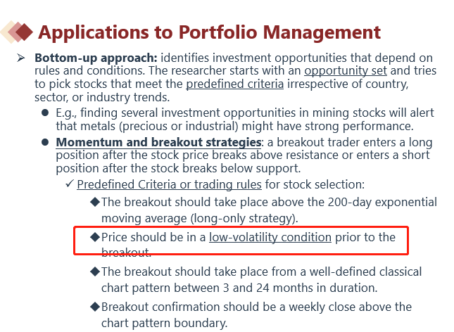 题目说的:momentum and breakout strategies这个策略特点是在波动小的时候(截图蓝色框)买入,未来(红色框)波动较大时获得赚钱的可能性