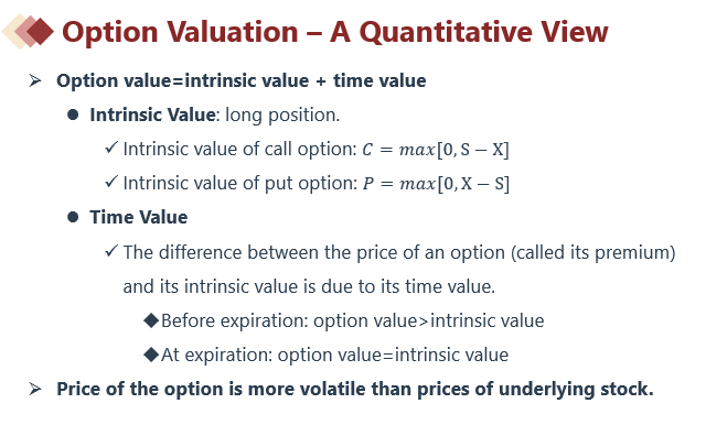 本题考的是“intrinsic value”内在价值和“time value”时间价值