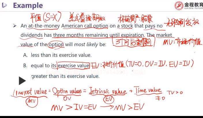 market value是现在时间点,假设期权不行权,期权合约的价值,不行权的期权有时间价值