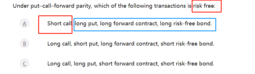 蓝色的框是protective put,由put option和stock,但是stock由forward contract和risk free bond替代了