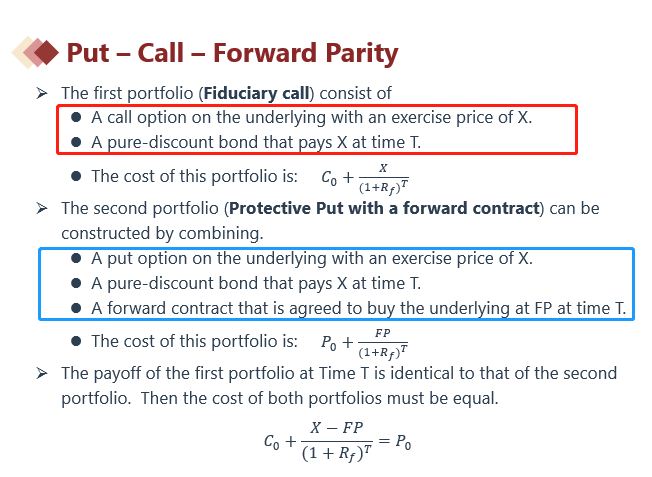 红色的框,一个是无风险债券,对应risk free,另一个是call option,组成的投资组合是fiduciary call