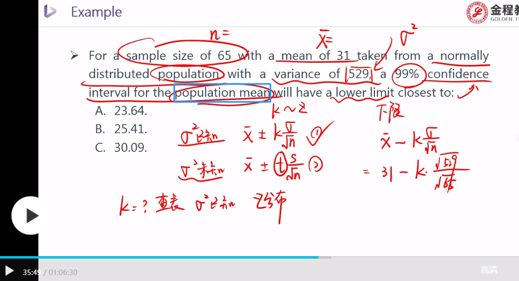抛开本题,如果其他题目需要用t学生分布查表得到关键值,那么t学生分布表一定会给出,我们不用背t学生分布表;如果是z表的关键值,需要背会关键值(例如,如下第四个截图,双尾检验下,5%显著性水平对应的关键值是1.96)