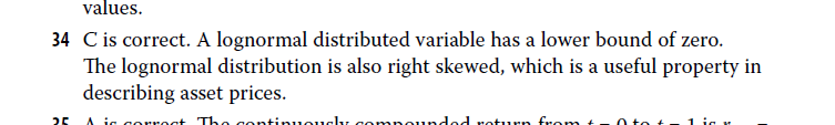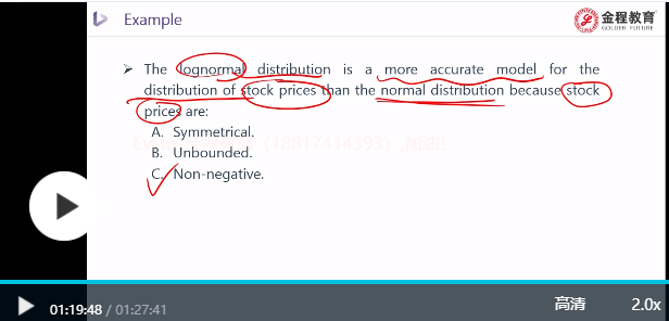 视频01.19.46的那道题老师讲的是c,但是答案是b,是答案错了吧?答案里a lognormal distributed variable has a lower bound of zero怎么理解