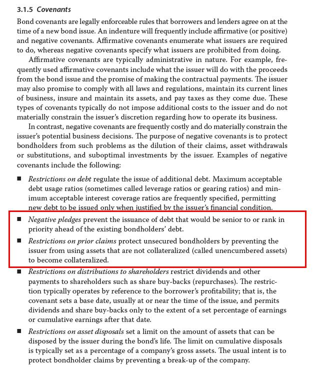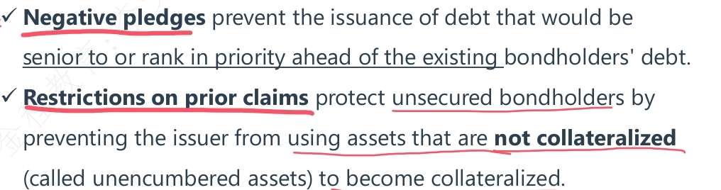讲义里negative pledges 和 restrictions on prior claim s 与他们后面的释义对的上吗?Notes里好像没有完全对应的内容 按照我划线的部分 感觉讲义里这两条小标题和后面的释义写反了呢?