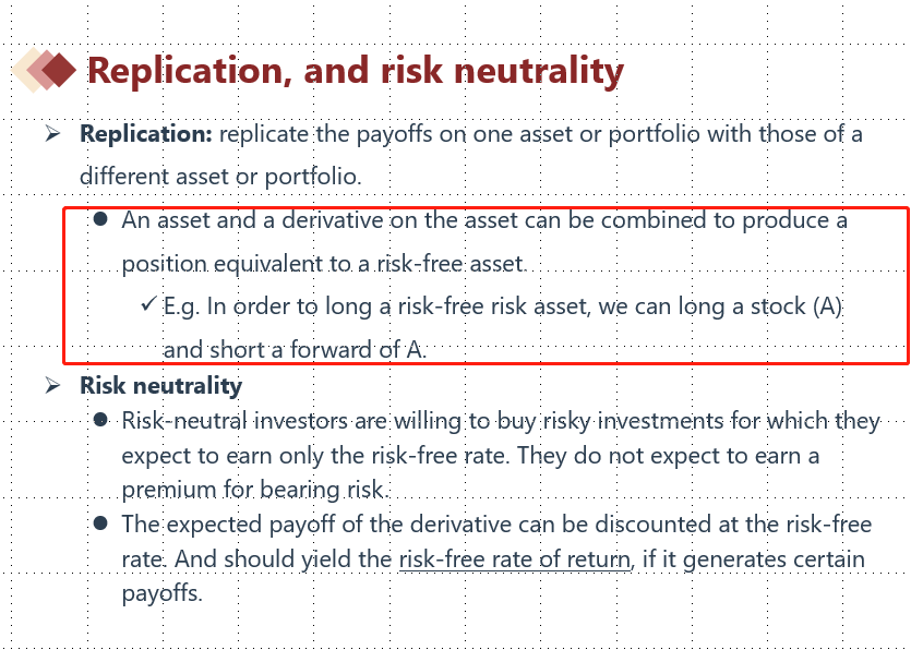 在衍生品基础班第二个章节第一个知识点“Arbitrage, replication, and risk neutrality”