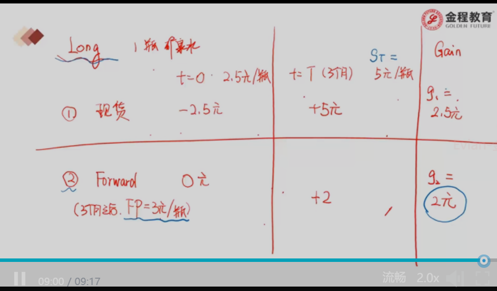 在题目没有说明的情况下,我们一般站在看好市场的角度,所以举例时,有了题目中现在买水花2.5元,未来水涨到了5元。