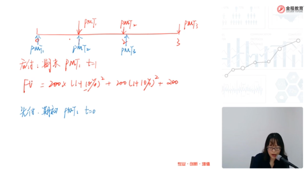 嗯嗯,是的,你的截图题目中,所有的现金流(用PMT表示)的数值一样,都是200,可以用截图中FV的公式计算,FV是将所有的现金流,折现到了期末时间点。