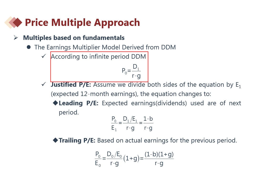 运用price multiple有两个逻辑,一个是based on fundamental。如图。