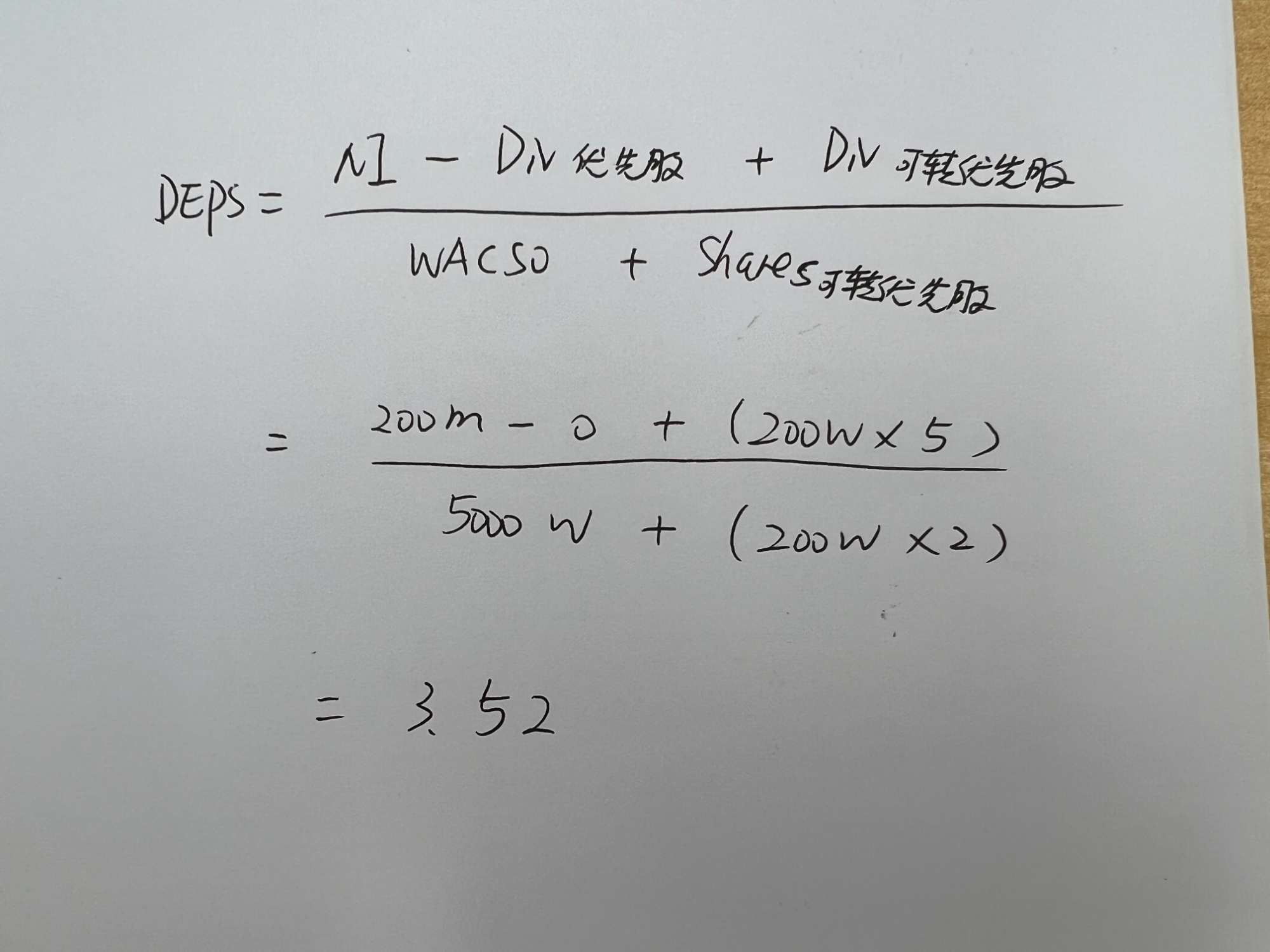 这样计算有问题吗?总感觉优先股和可转换优先股要分开算,不然讲公式的时候老师就应该提示。