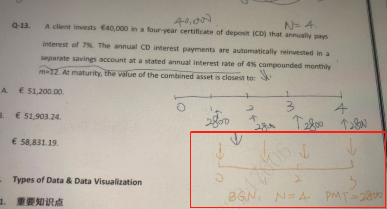 老师,请问百题13题,我用先付年金的方式去计算利息复利的终值,这样的计算方式哪里错了呢?确实是4笔现金流,N确实等于4呀…