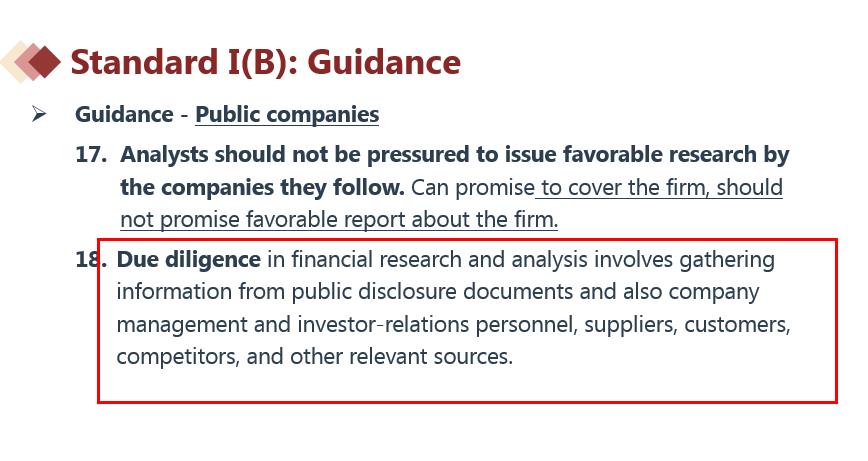 见下图讲义,说到了所有的信息和资料的使用都需要勤勉尽职。