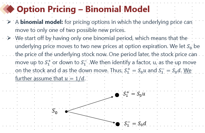 在衍生品二叉树模型为期权合约定价时,u表示标的资产价格上涨的幅度,u-1表示上涨的百分比这个概念