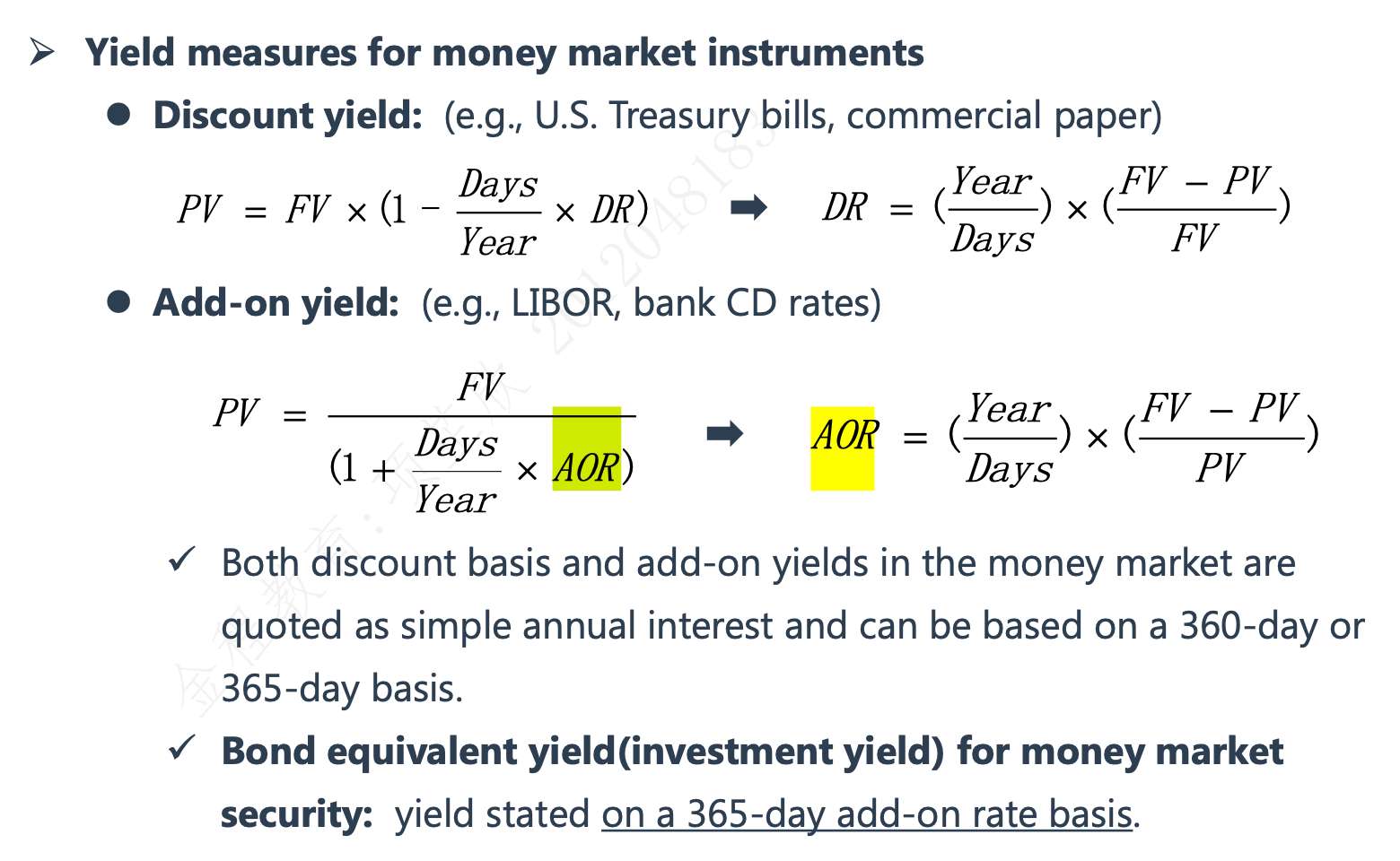 AOR通常默认就是BEY,是基于365天的。360天的是discount rate