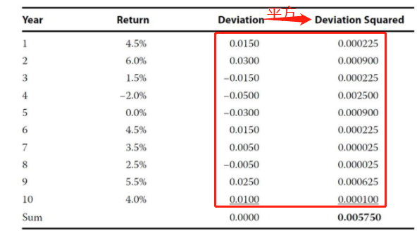 请问综合题第四小问,deviationsquared是怎么算出来的?不是第二列deviation的平方吗?如果不用金融计算器,用之前高中数学的公式算出来答案不对呀。