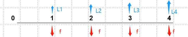 接下来,取出任意一个时点,对应两个箭头,相当于一份FRA的现金流,此时FRA期初的价值不为零