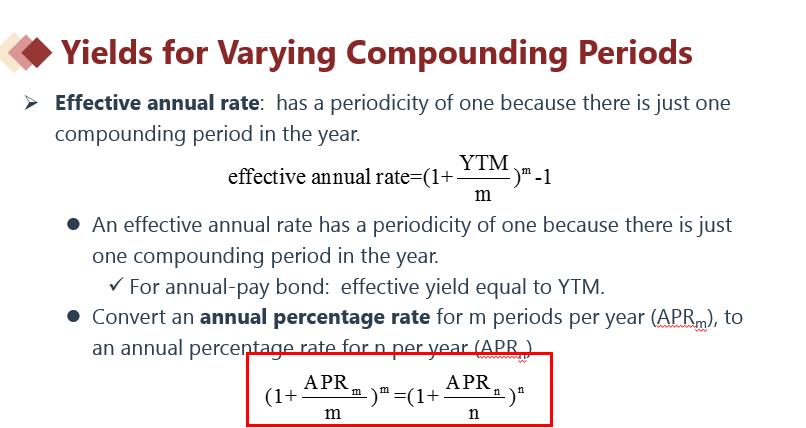 老师,我不太理解,为什么这里的YTM是按照单利直接x12,第二题的YTM又是按照复利的算法算的次方呀?什么时候该用单利,什么时候该用复利呀?谢谢