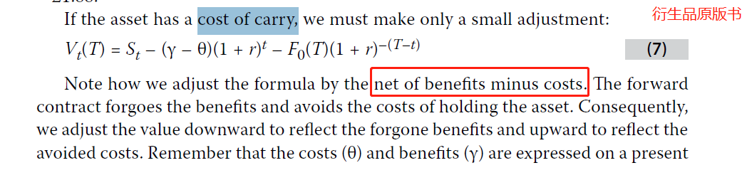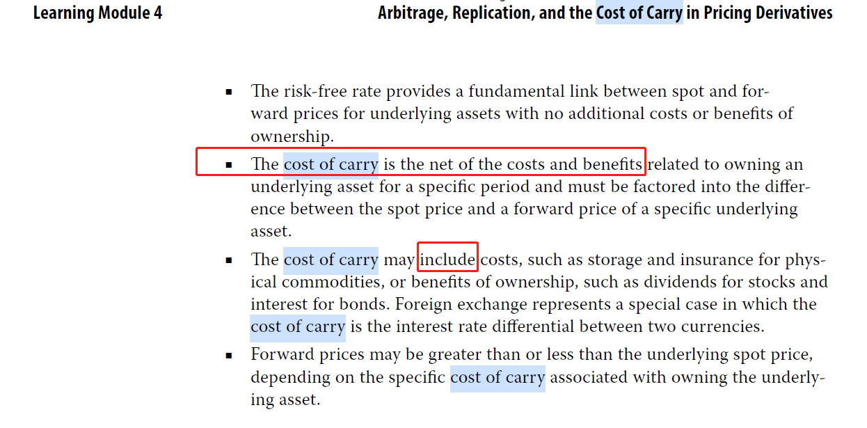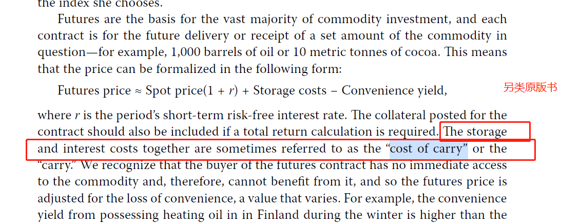 这就是一个东西,22年原版书没有详细说明,我找来了23年的原版书,对cost of carry 有较详细的描述