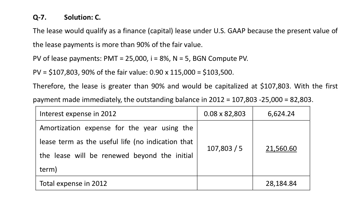同学你好,这里乘以0.9,是为了判断PV of futureCF是大于资产的公允价值的90%,因此该设备的租赁需要划分为finance lease,以finance lease的处理方式进行处理哈