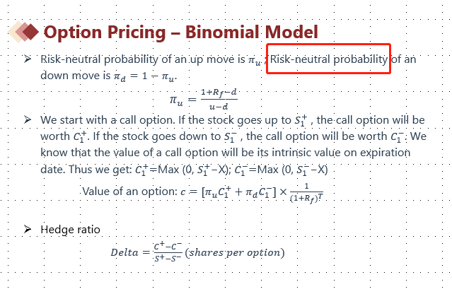 1.二叉树定价计算过程中,用到的概率是“风险中性概率”,不是股票真正上涨和下跌的概率