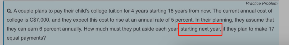 也就是t=17时间点和第一笔年金发生的时间点t=18差一期,此时计算的PV是t=17时间点的PV