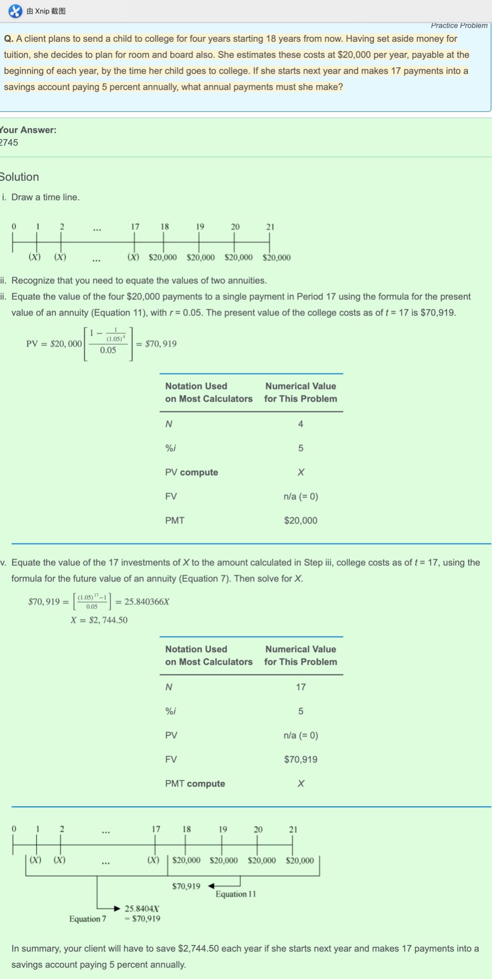 那么这个问题,后一段说明了tuition payable@beginning of the year, 为什么solution给出的答案后一段还是用的ordinary annuity算?