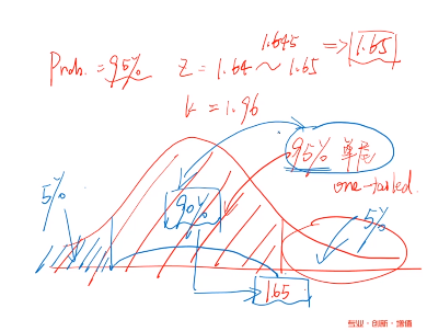 没听懂对称过去的过程,怎么推出来的95%单尾的K取值=90%的双尾?