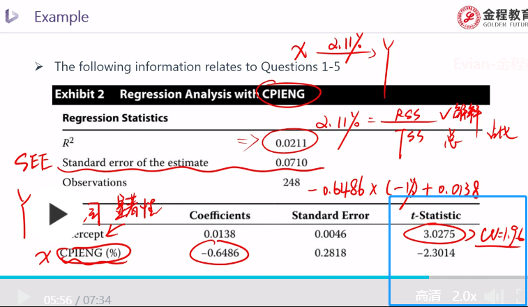 C说回归得出的结论可以说明:在0.05显著性水平下,"原假设:斜率=0"和"原假设:截距=0"都不能被拒绝。这句话不对,题目要选“不对的”,所以选C。