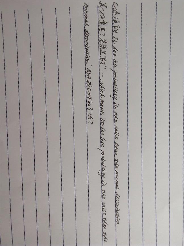 同学你好,这里C是不对的,如果是同一显著性水平,那么P值也是一样的,概率也是一样的,B是对的,t分布是肥尾,这是最明显的