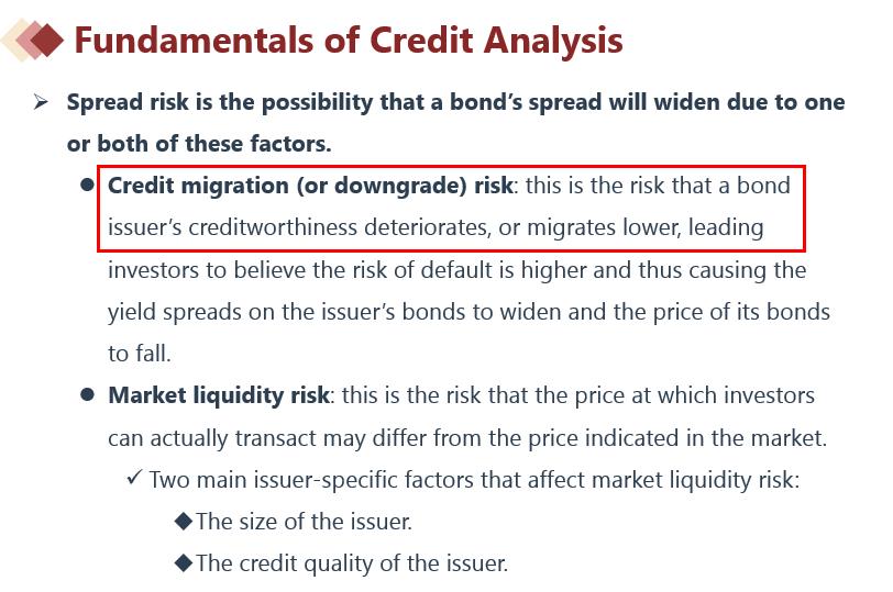 题干描述的是credit migration risk定义概念,见下图讲义。