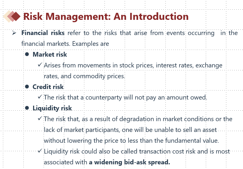 liquidity risk指的是难以将资产在市场上变卖换取现金的不确定性,例如将一个古董玉白菜拍卖,需要较长的协商时间再成交。