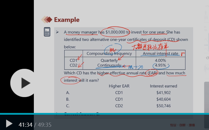 老师您在这节课最后提那个案例,为什么解题不是直接用200×(1+i/4)的8次方;而是分了两步去算,我手头没有计算器没有验算,结果是不是一致