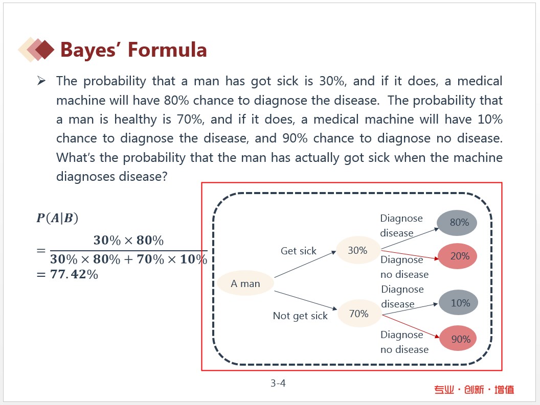 讲义部分只有图片,没有语言的描述,但是老师上课有说明,请参考知识点:Bayes’ Formula。可以作为补充知识点记忆一下。