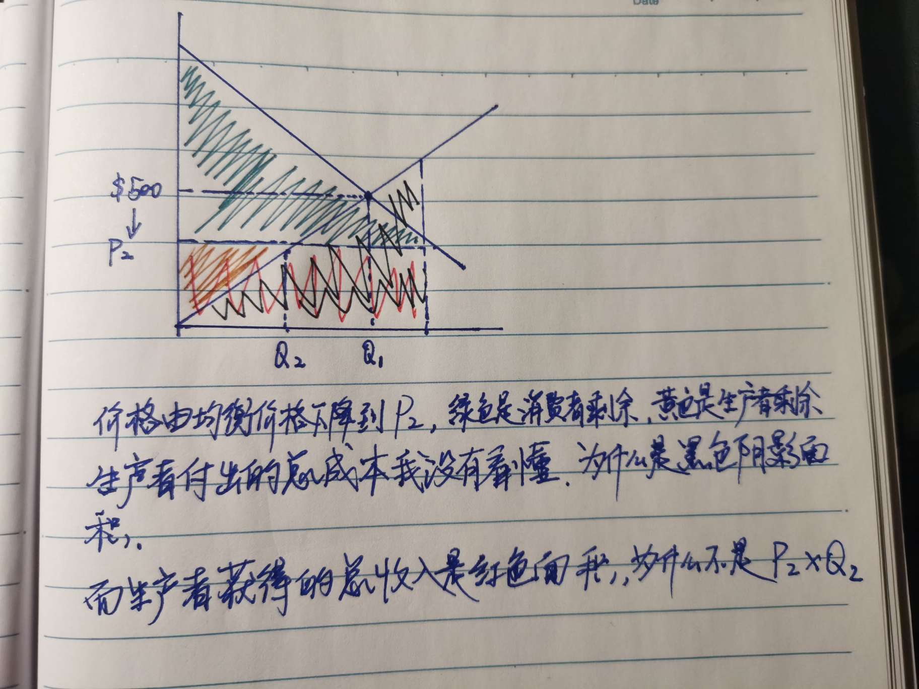 这里的生产过剩,说的是:在对应的市场价格P2下,厂商本应该生产供给的产量为Q',但厂商却提供了Q2的供给量。以下图进行说明: